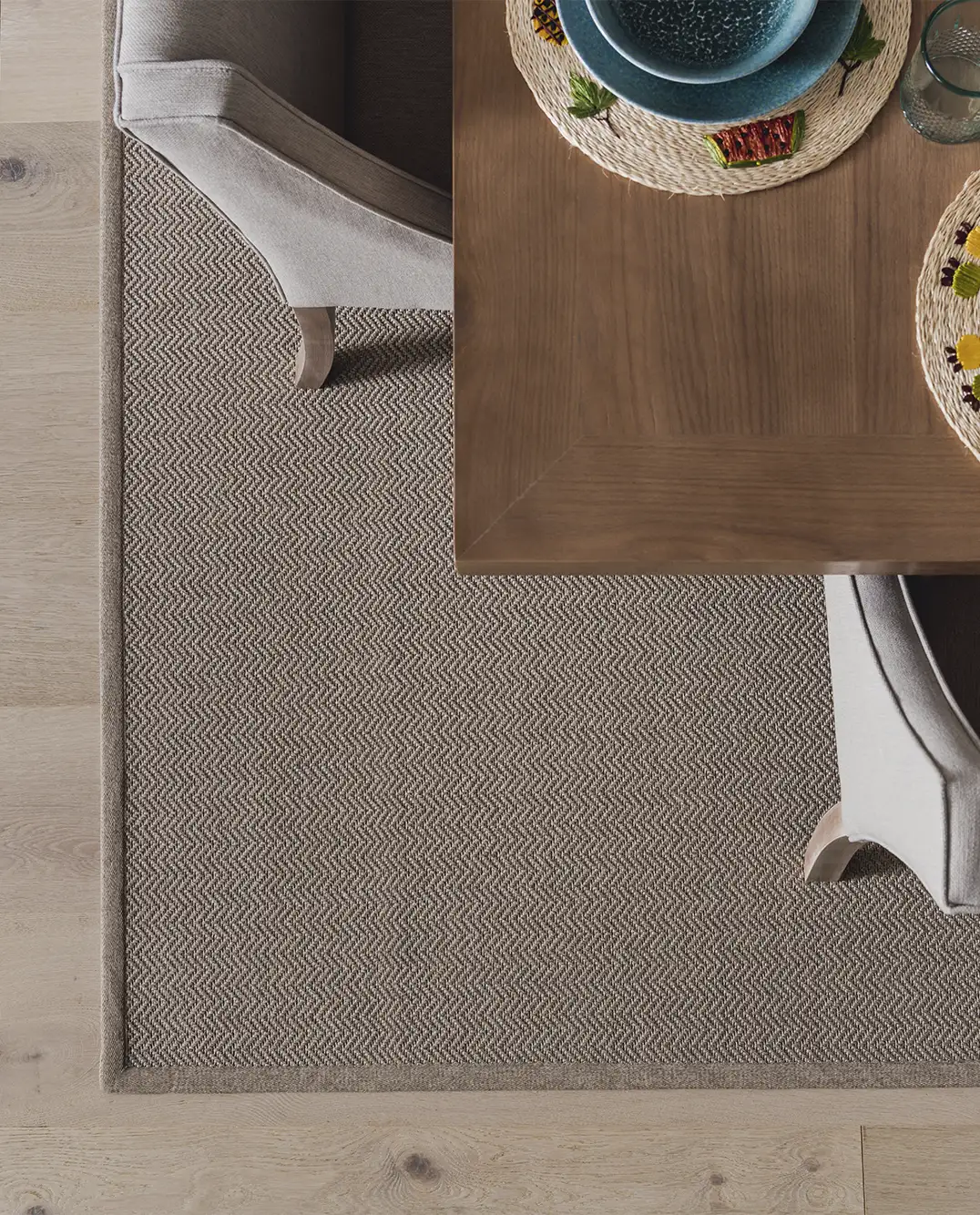 Het kleed wordt volledig op maat gemaakt, met een maximale breedte van 4,00 meter en een lengte tot 6,00 meter. Zo creëer je eenvoudig een royaal buitenkleed dat perfect tot zijn recht komt onder een buiten eettafel, loungeset of overkapping. Dankzij het gewicht en de stevige structuur blijft het kleed mooi liggen en klapt het niet snel om, ook bij intensief gebruik.