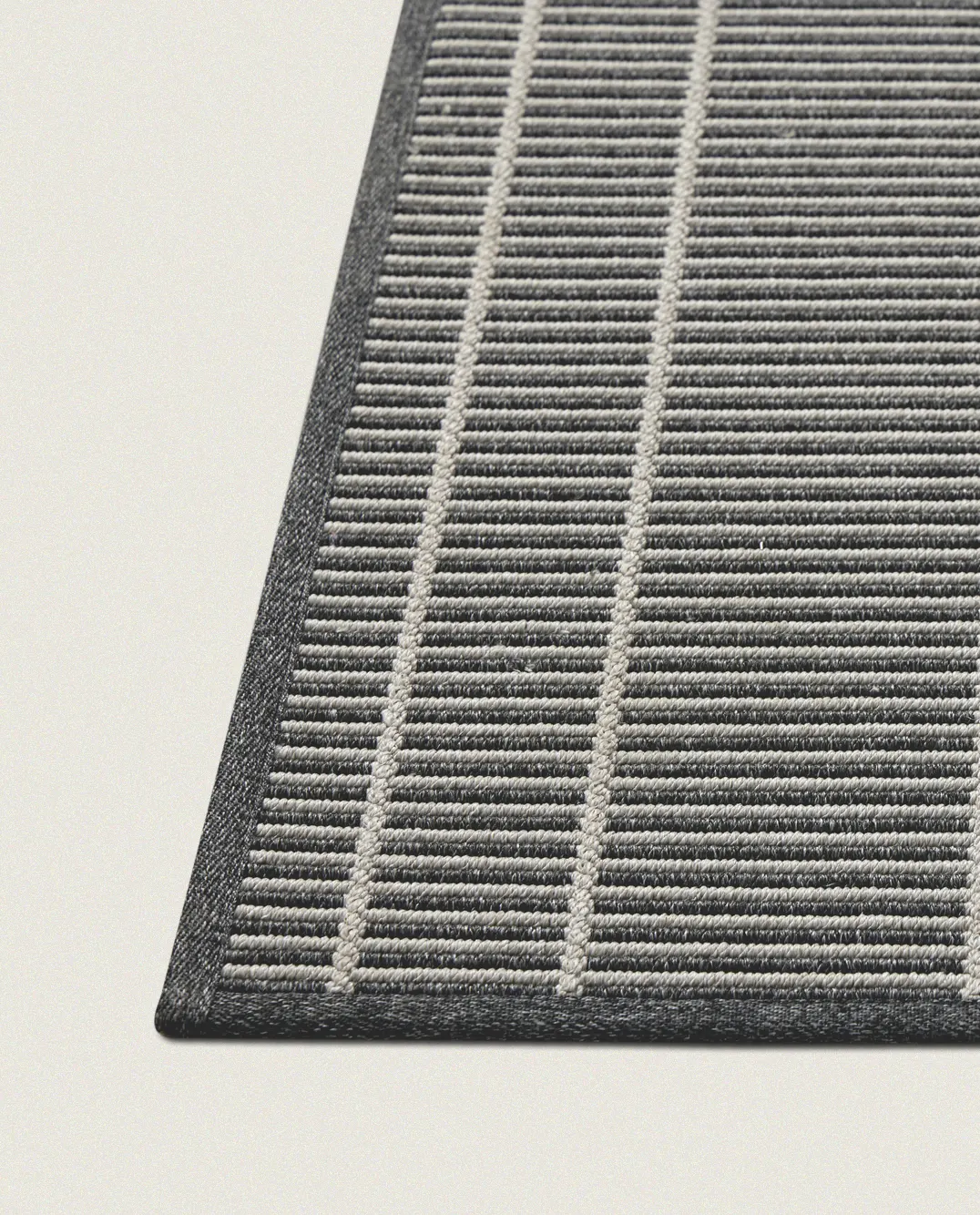 Dit donkergrijze sisal-look buitenkleed met subtiele strepen brengt een verfijnde balans tussen Japandi-rust en Scandinavische functionaliteit. Het lijnenspel geeft het kleed een modern karakter, terwijl de ingetogen kleur zorgt voor een tijdloze en kalme basis. Hierdoor sluit het ontwerp moeiteloos aan bij minimalistische, natuurlijke en moderne buitenomgevingen.